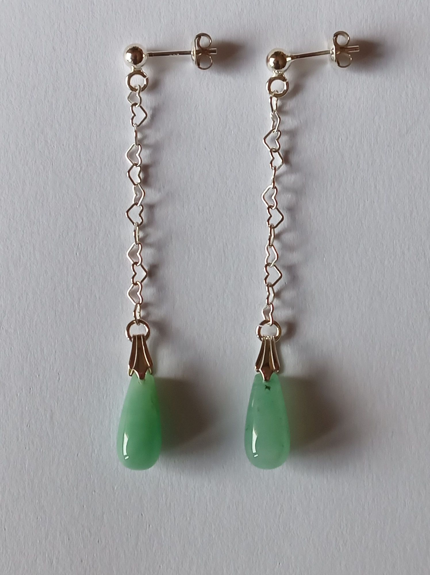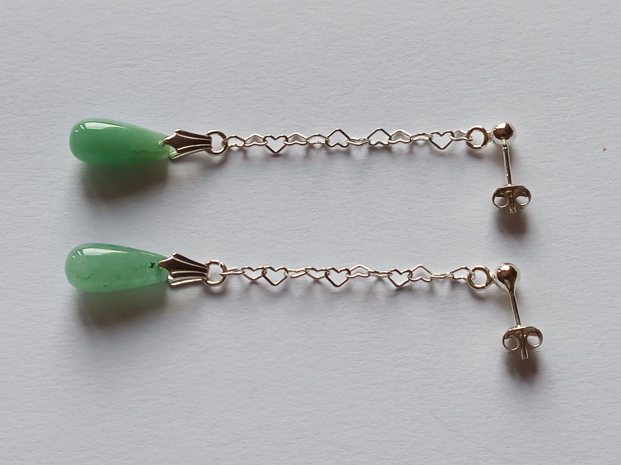Aventurin-Ohrringe (Ohrstecker) mit Kette in 925er Silber