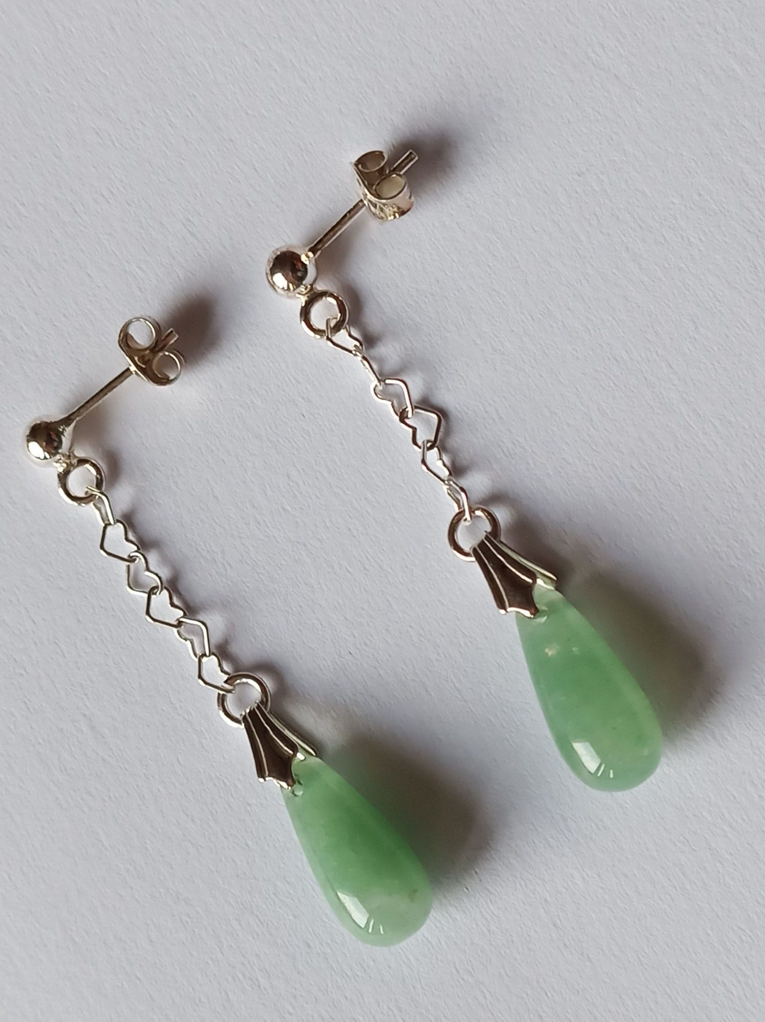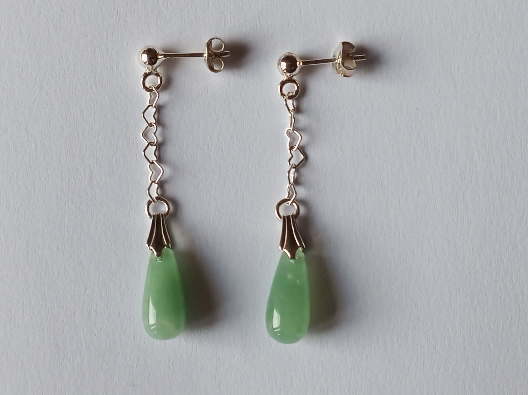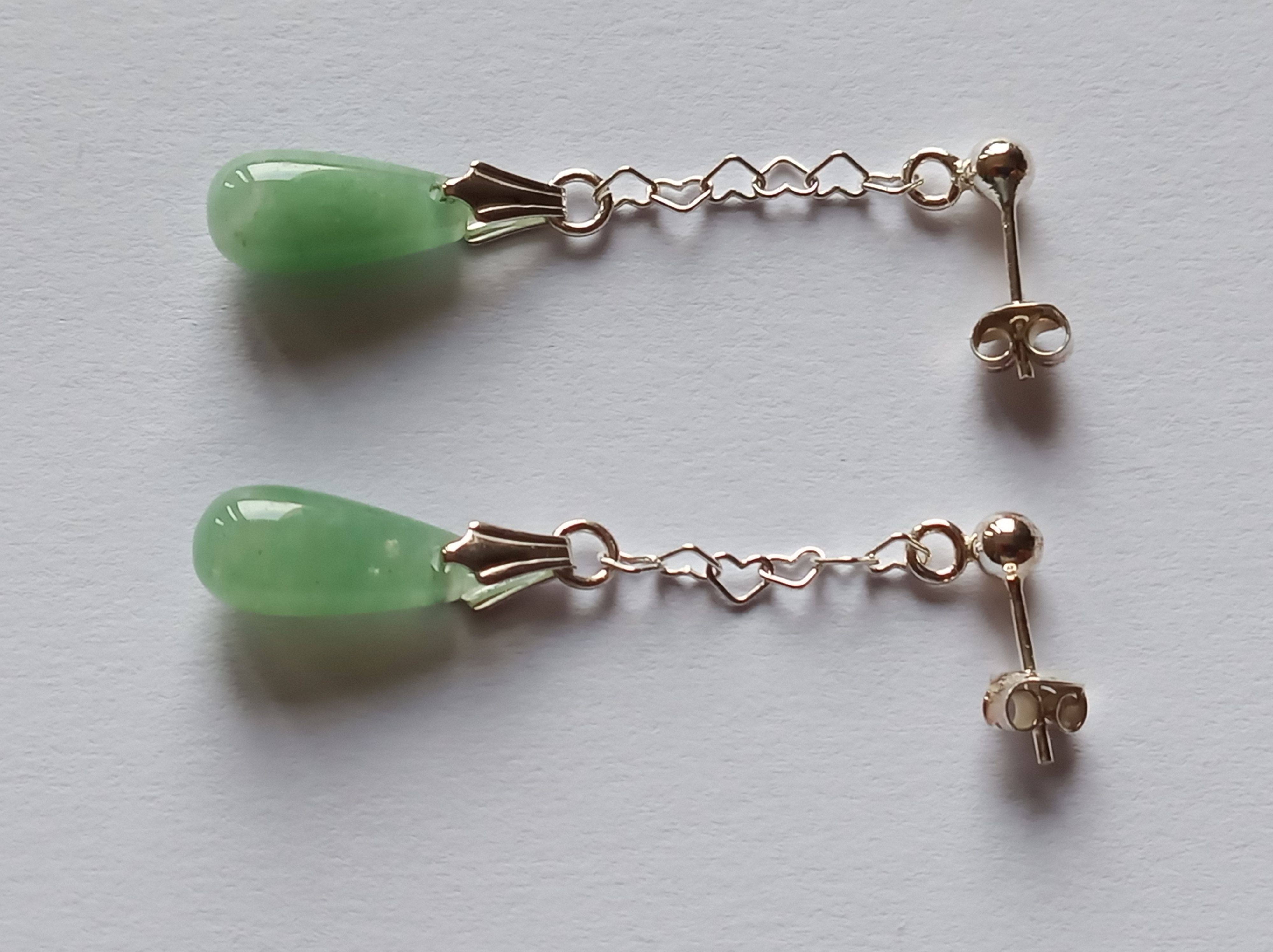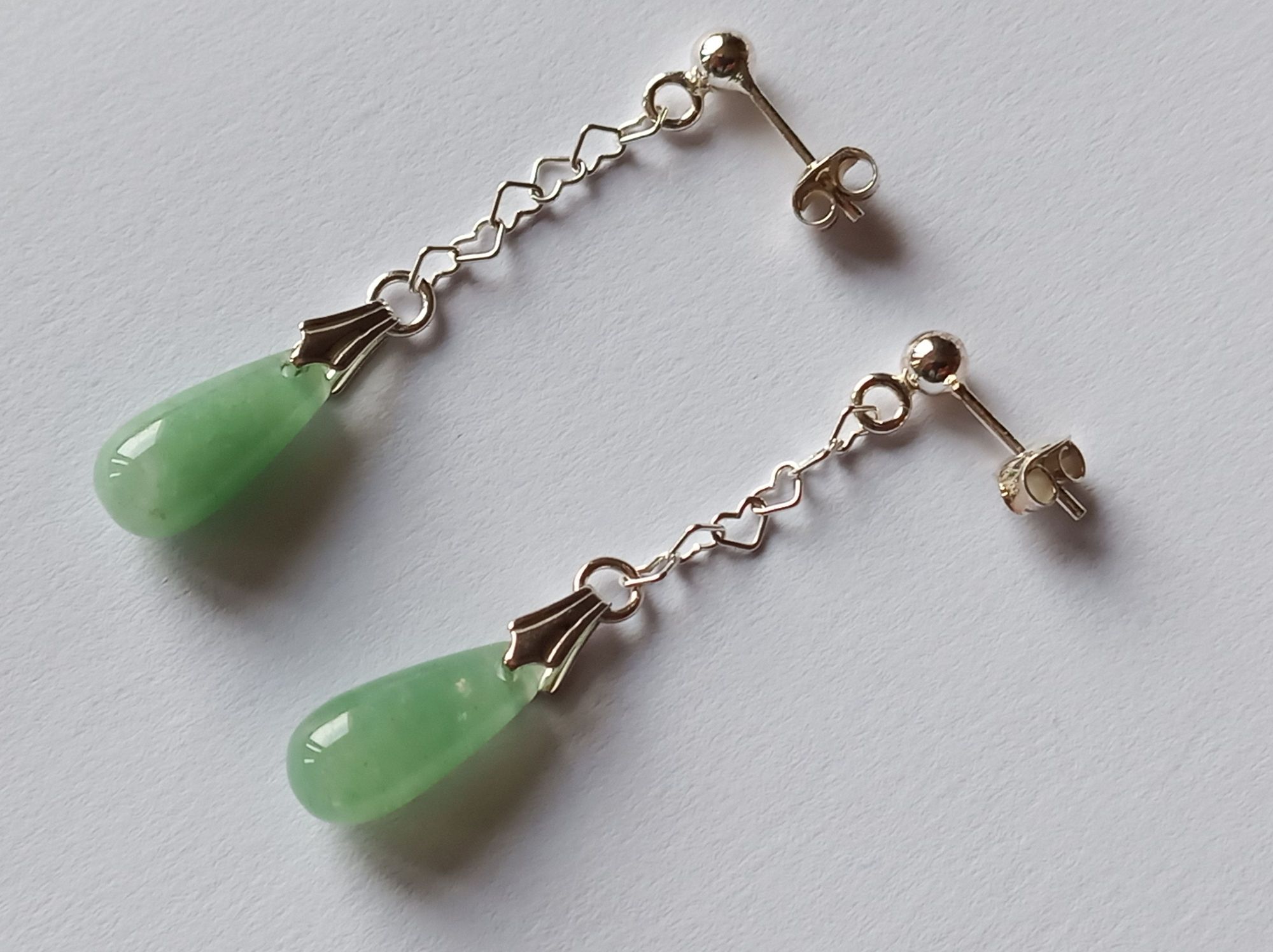 Aventurin-Ohrringe (Ohrstecker) mit Kette in 925er Silber