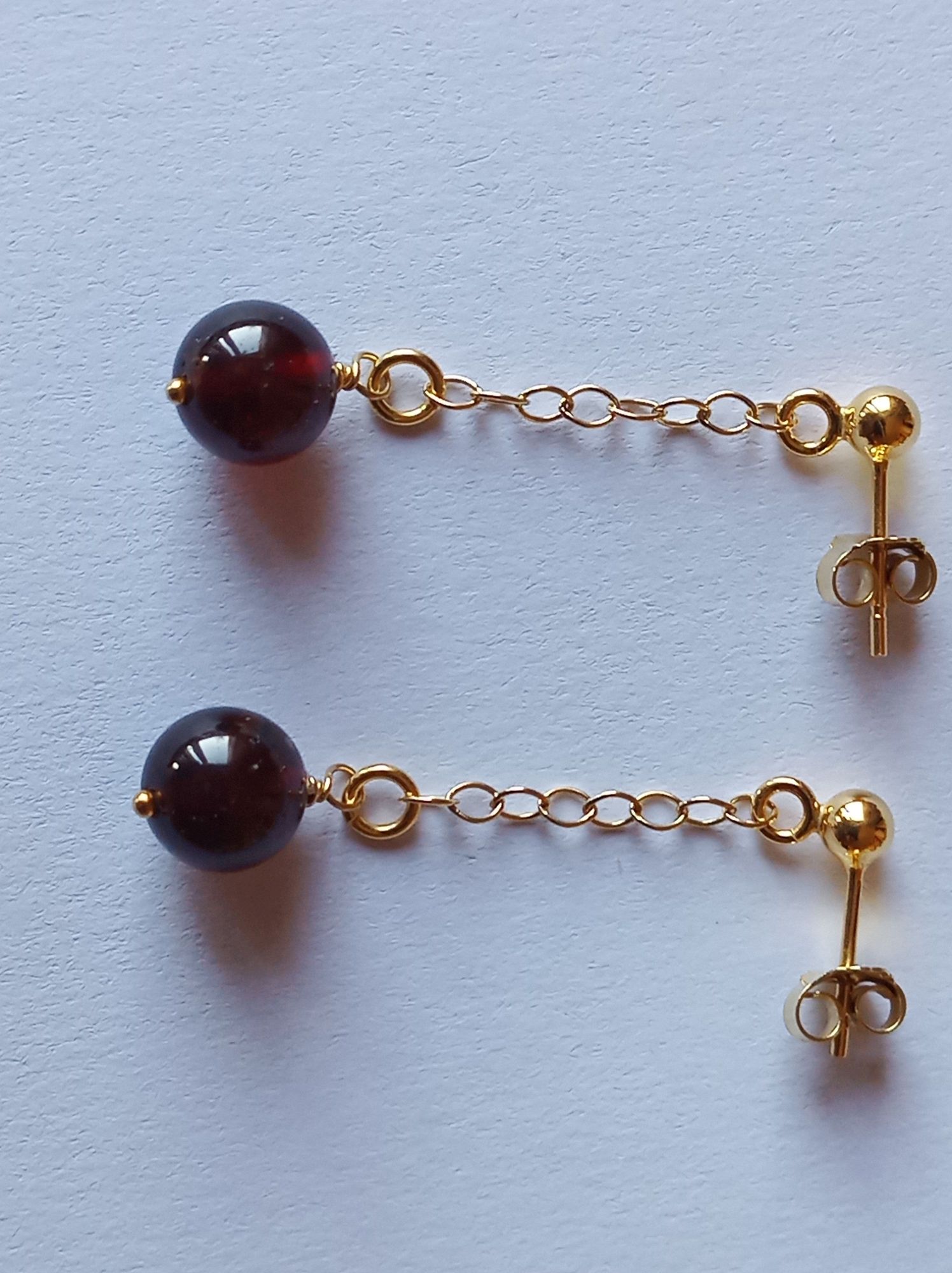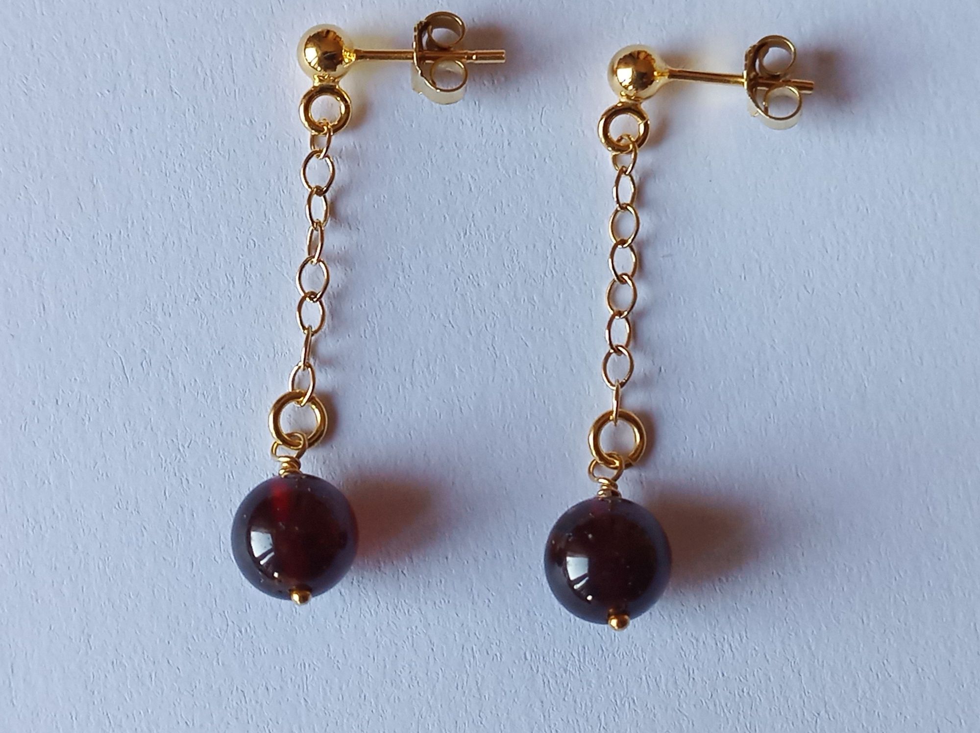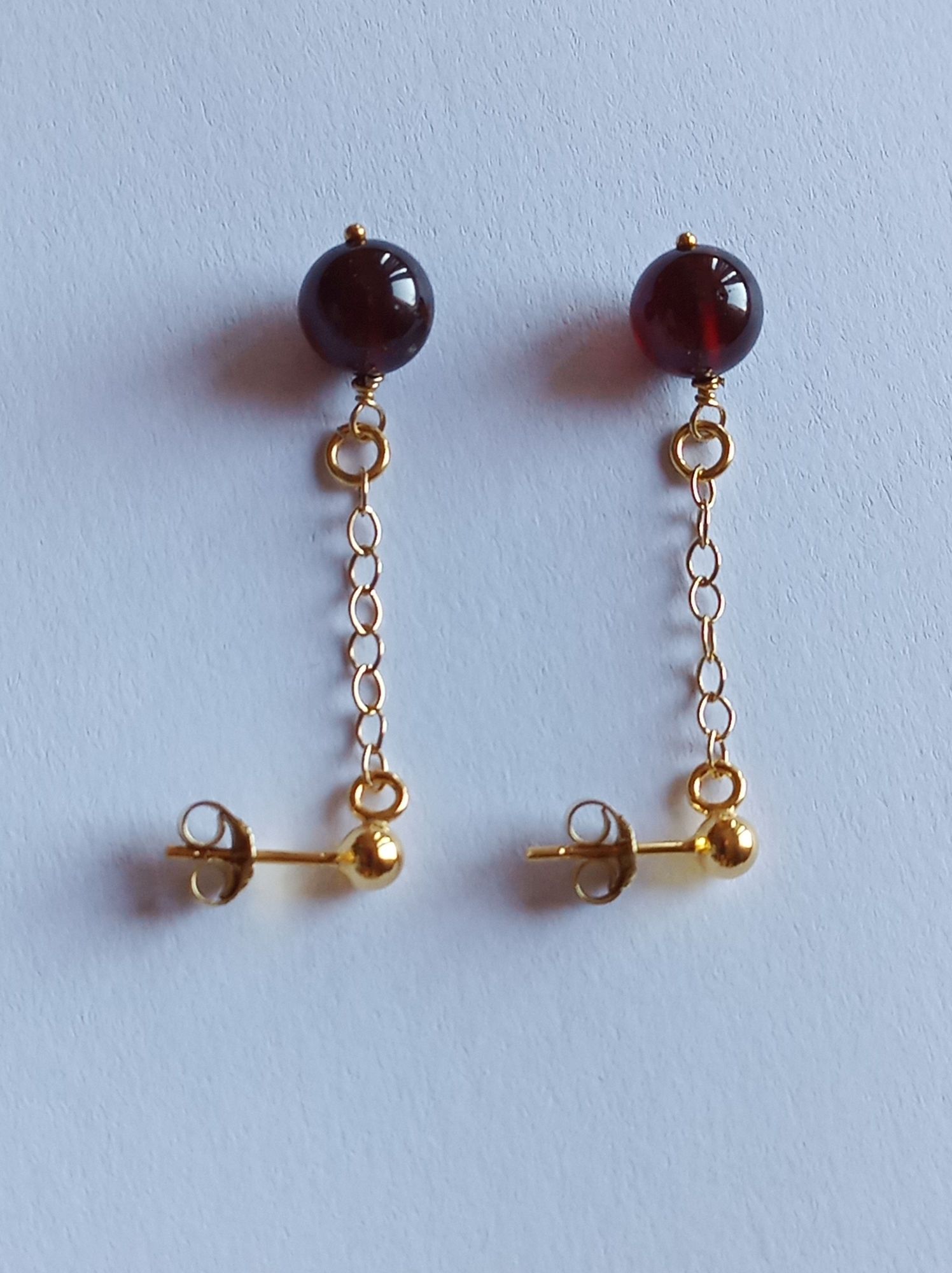 sie tragen runde Granat-Perlen, die am Ende einer 2,2 mm