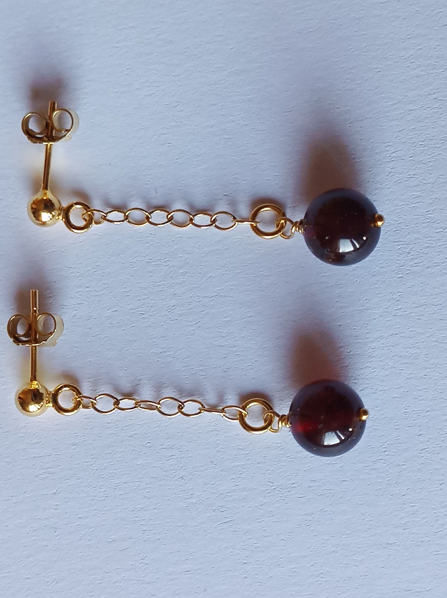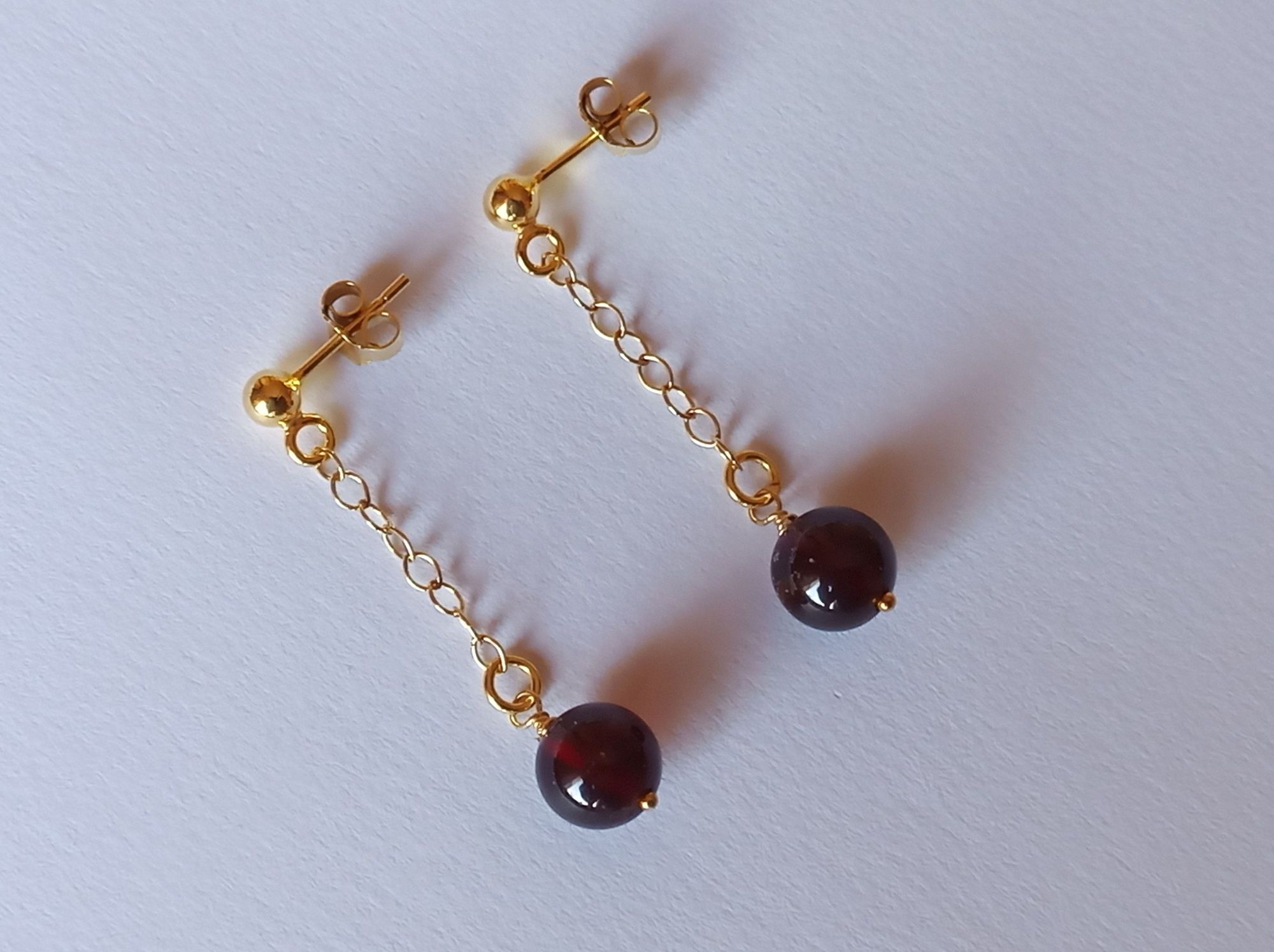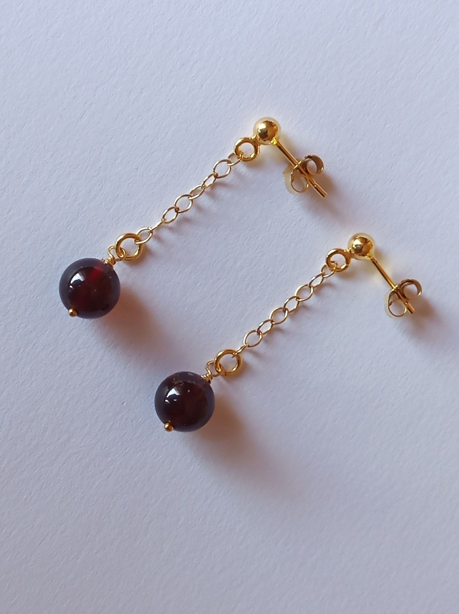 sie tragen runde Granat-Perlen, die am Ende einer 2,2 mm