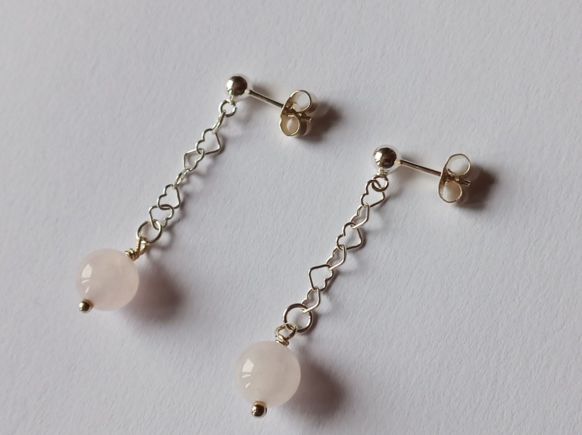 Rosenquarz-Ohrringe (Ohrstecker) in 925er Silber