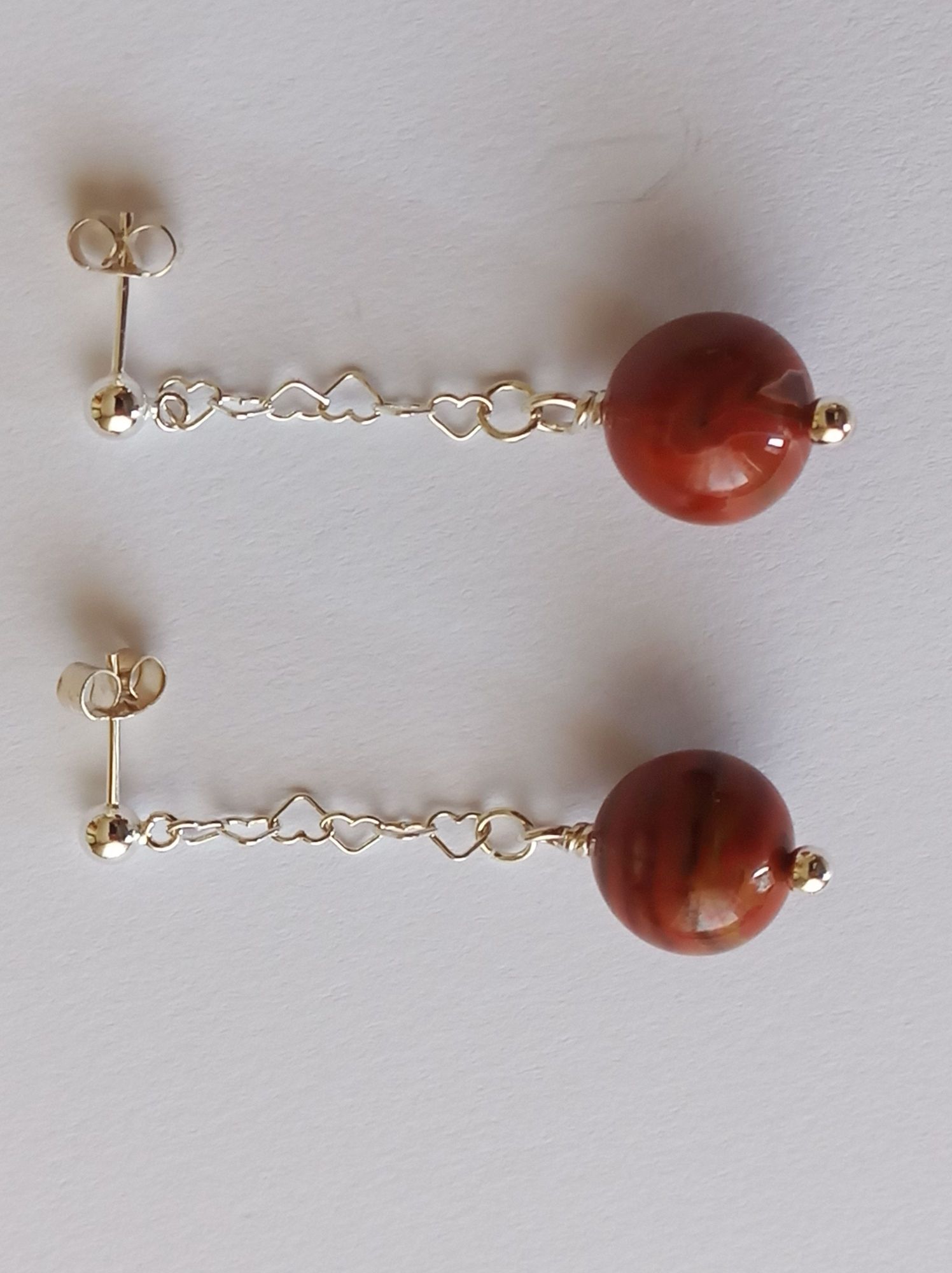 Rote Sardonyx-Ohrringe (Ohrstecker) mit Kette in 925er Silber