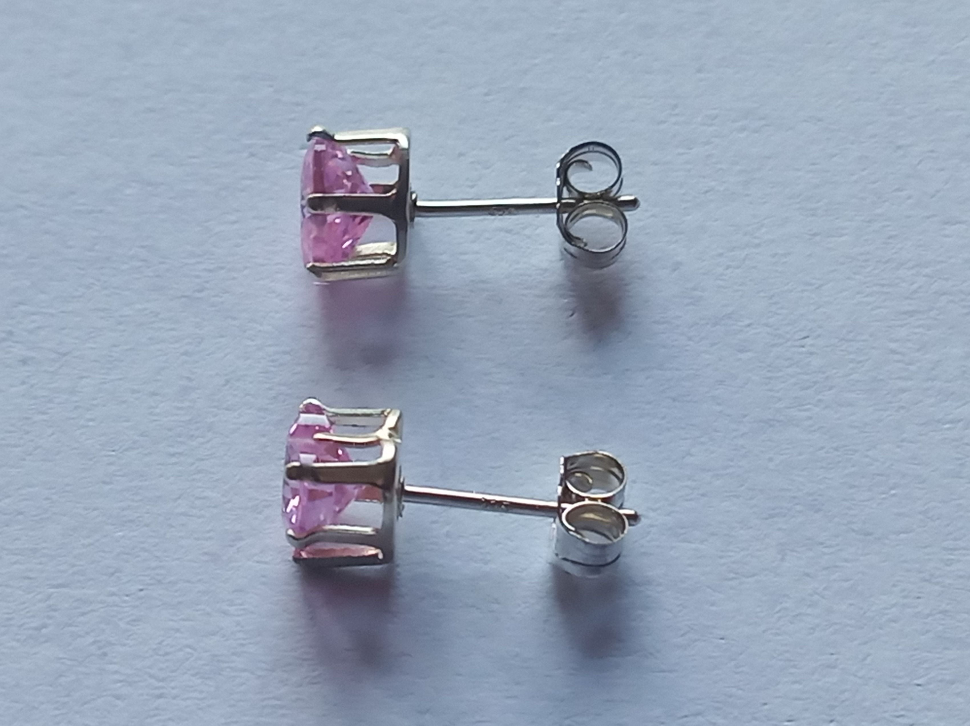 Zirkonia-Herz-Ohrringe (Ohrstecker) pink